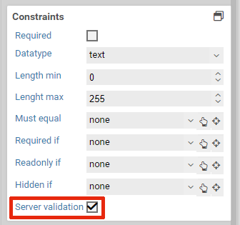For each element you can choose whether or not you would like to activate the server-side validation.