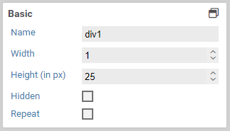 Height (in px) | The minimum height for the container in pixels. The container will be enlarged automatically when the containing elements are too large. |