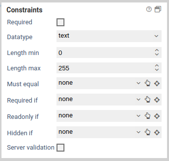 This form element possesses the following additional properties for the section Constraints.
