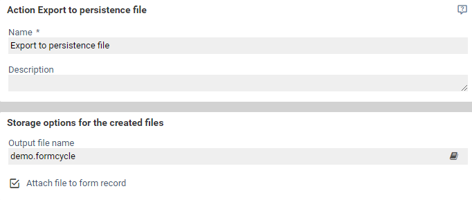 Nutzeroberfläche für Aktionen des Typs Export als Persistence-Datei
