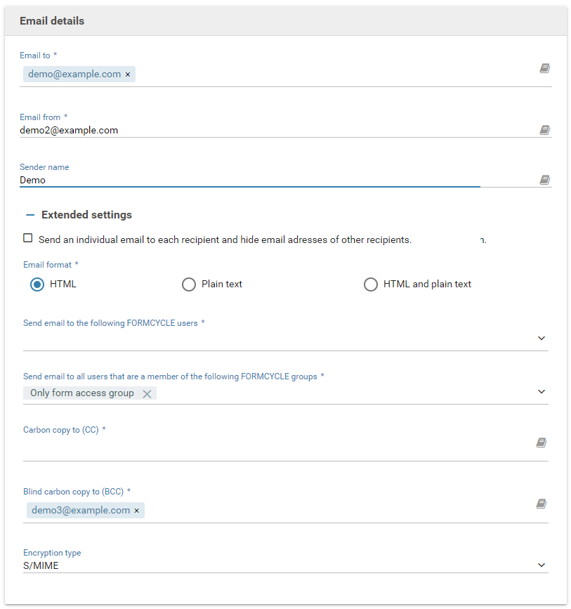 Encryption type with which the email is to be encrypted. This option is only displayed if a corresponding plugin is installed.